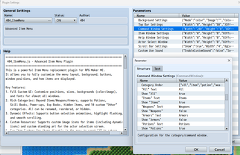 - Layout Freedom: Move the Command, Item, Help, and Actor windows to any X/Y coordinate. Resizing is drag-and-drop simple via parameters.