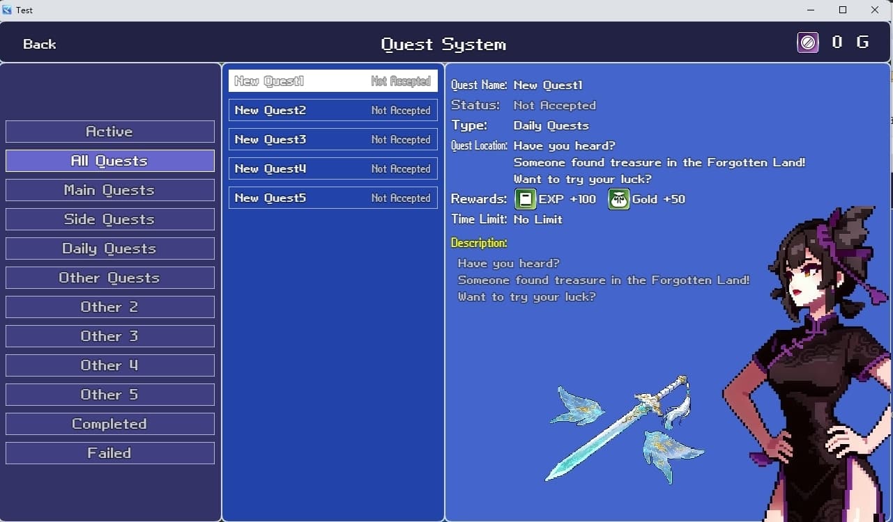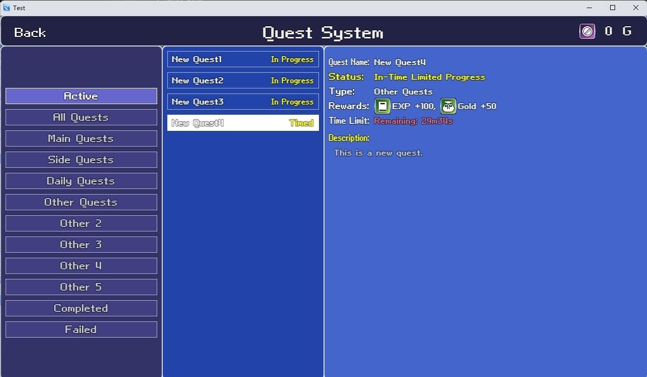 - โ 8 Task Types - Main quest, side quest, daily quest, others, and others 2-5. A total of 8 types available.
